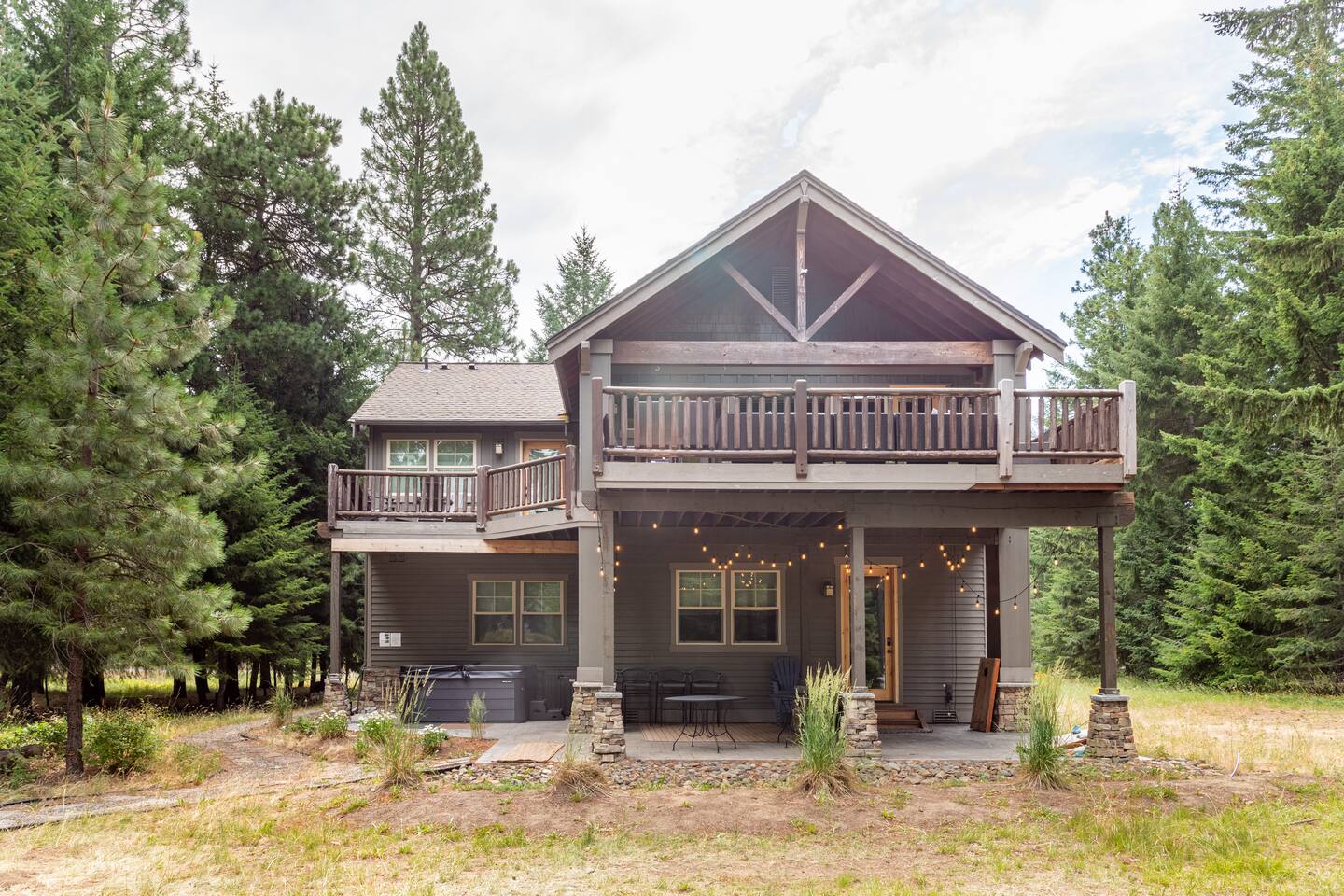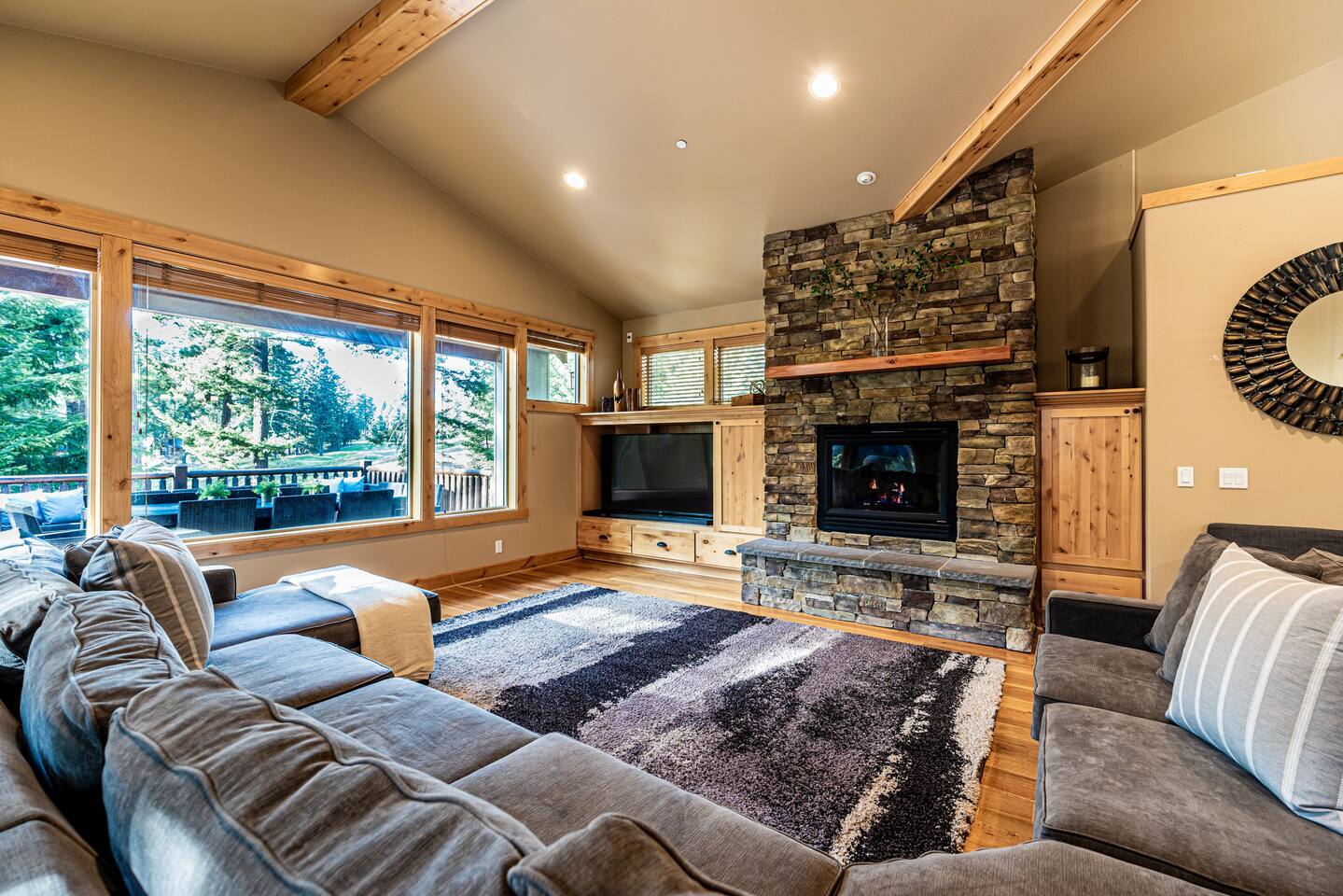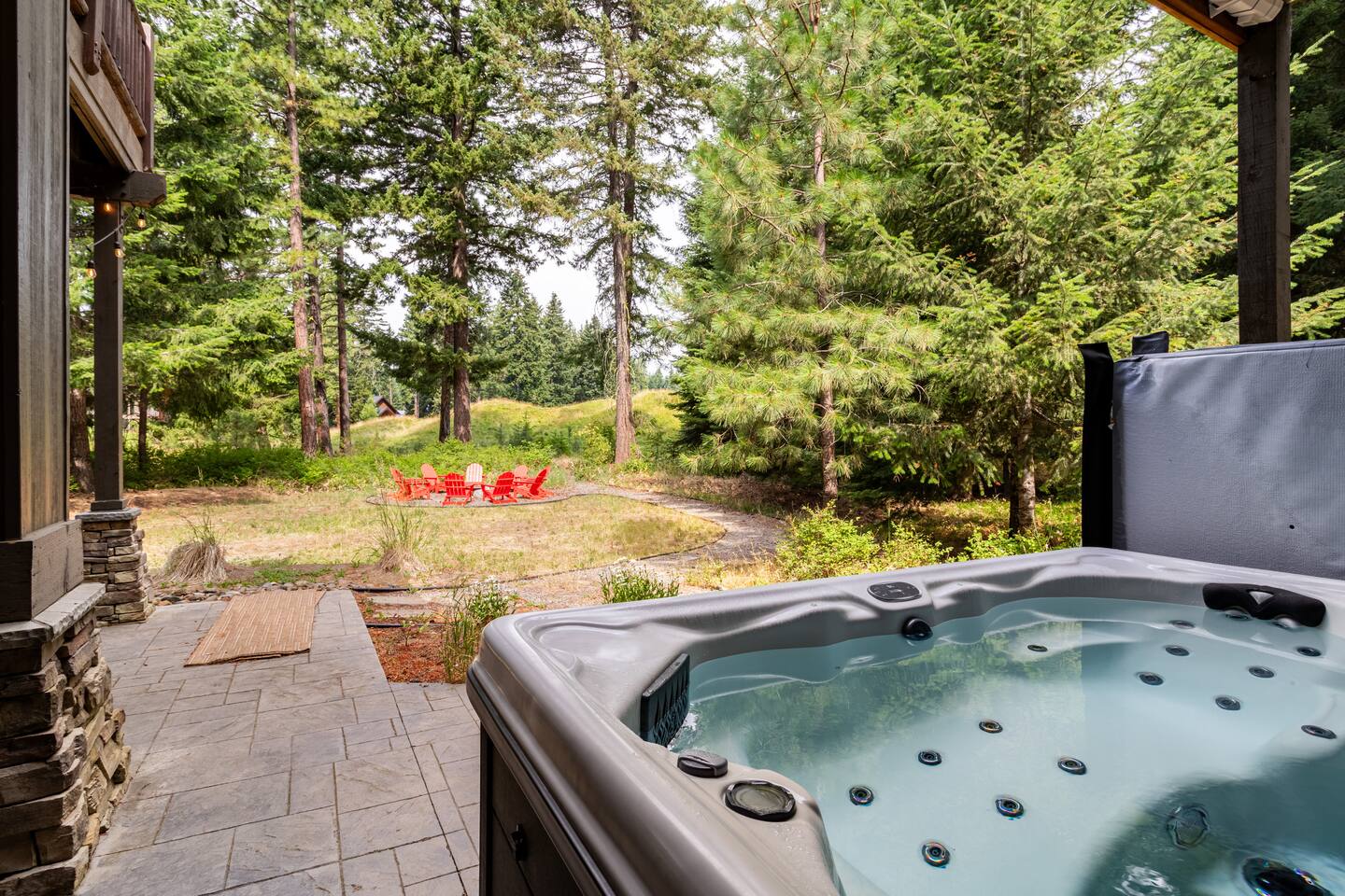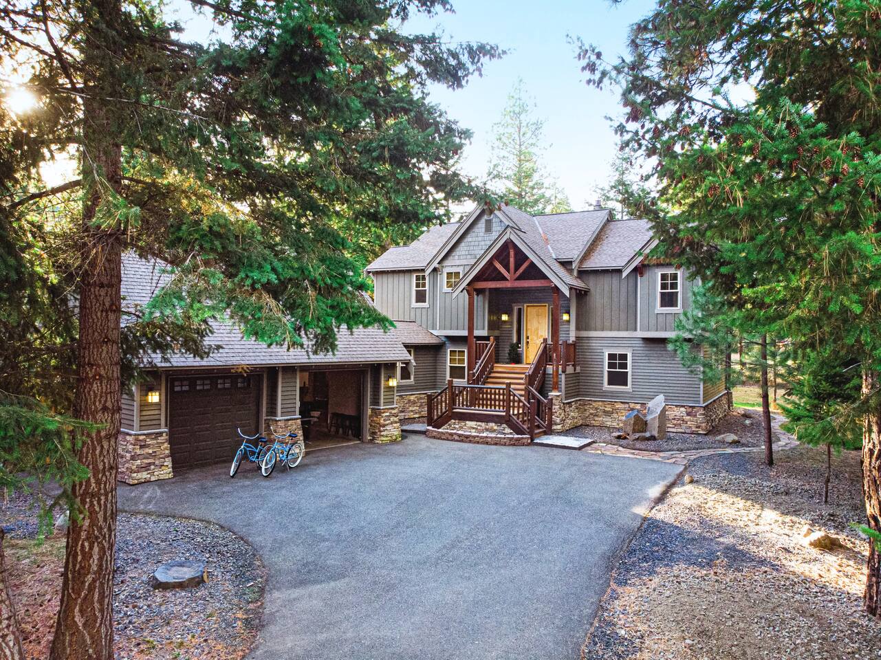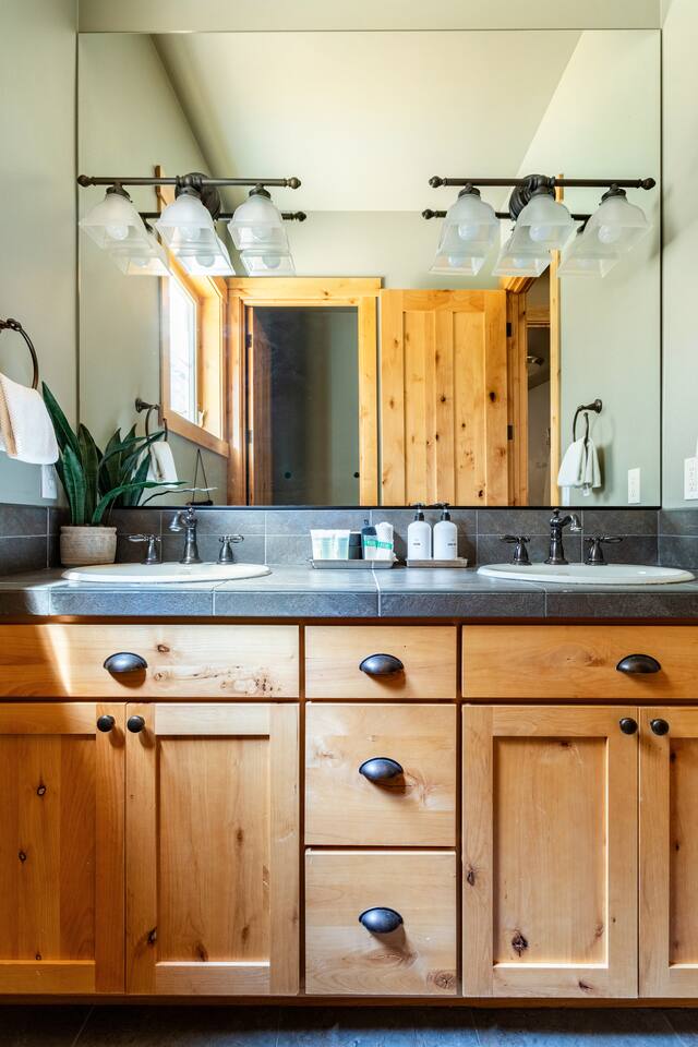 This stunning home offers the comfort, convenience, and privacy of a house with the luxury of a high-end hotel. We have carefully provided luxurious furnishings and amenities to make it one of the most desirable vacation homes at Suncadia! The home offers many amenities, including a full kitchen with professional-grade appliances, a large living room with a beautiful stone fireplace, a large patio and deck, toys and games for the whole family, 6 large HDTV's with DirectTV, apps, and FireTV's, and complimentary 100MB internet. Also we have just recently added a Golf Simulator for year round Golf. It’s all you could want for your next getaway! • Kitchen: the spacious kitchen features all the appliances, cookware, and utensils you need to prepare delicious meals—or you can cook outdoors on our gas barbeque. Enjoy your culinary creations at the spacious 10-seat dining room table, kitchen bar, or even outside on our 8-person patio set and enormous outdoor sectional. This home was built for entertaining! • Activities: there are many ways to spend a fun afternoon or evening around the property, from relaxing in the 8-person hot tub, to enjoying lawn games, to watching your favorite sports in the spacious living room on our 65” 4K curved TV. In the living room curl up with a book beside the stone fireplace, or enjoy the evening with a large group of family and friends. • Bedrooms: each of the 4 bedrooms are fully furnished for your group and uniquely designed with their own themes, and the bathrooms are stocked with complimentary essentials. The master bedroom offers a plush king-size bed, gas fireplace, TV, and ensuite bathroom with rain shower. The lower level features two more bedroom suites with king sized beds, each with televisions and their own private bathrooms—if you’d prefer, one of the beds can be converted to two twins. The 4th bedroom features 6 bunk beds with sleeping for 7.