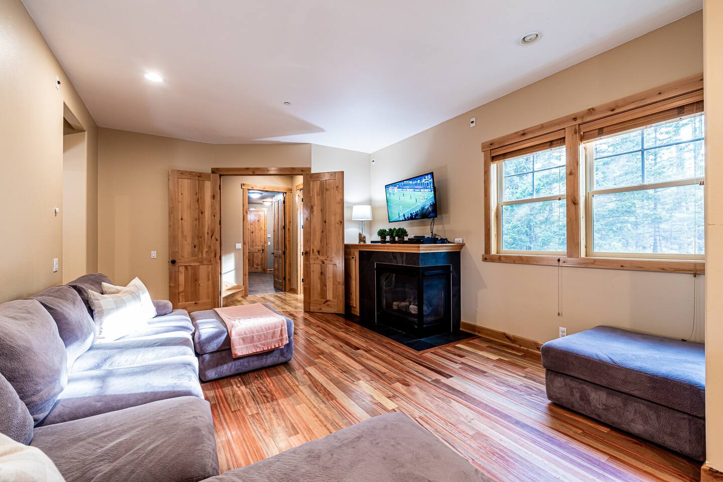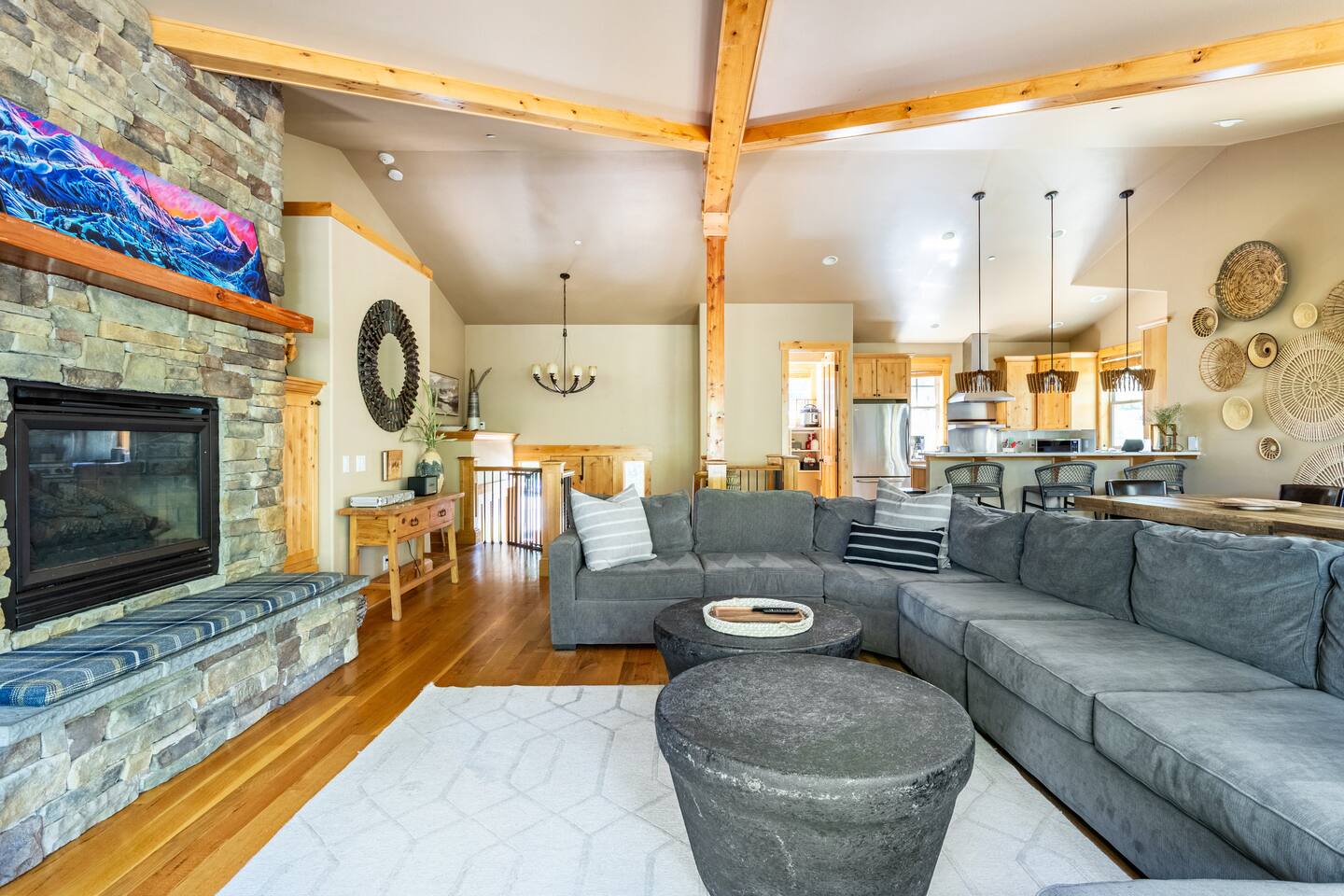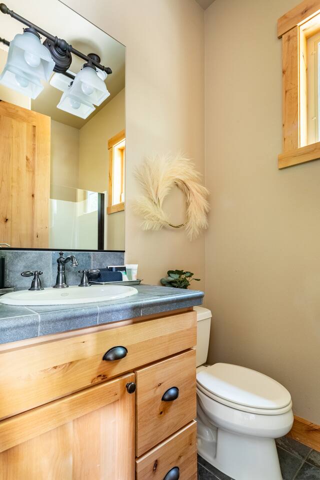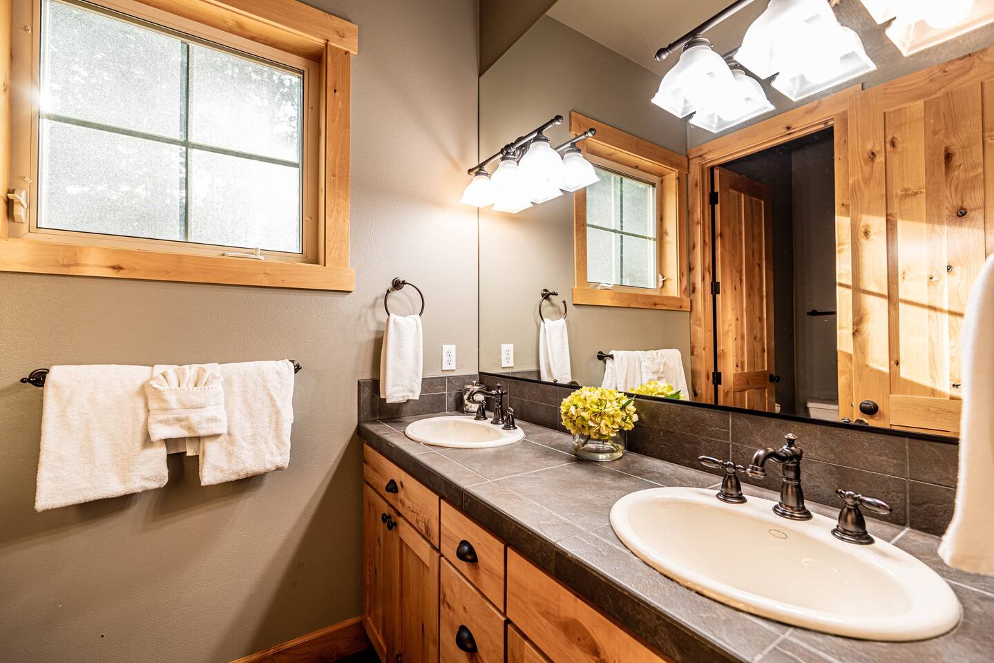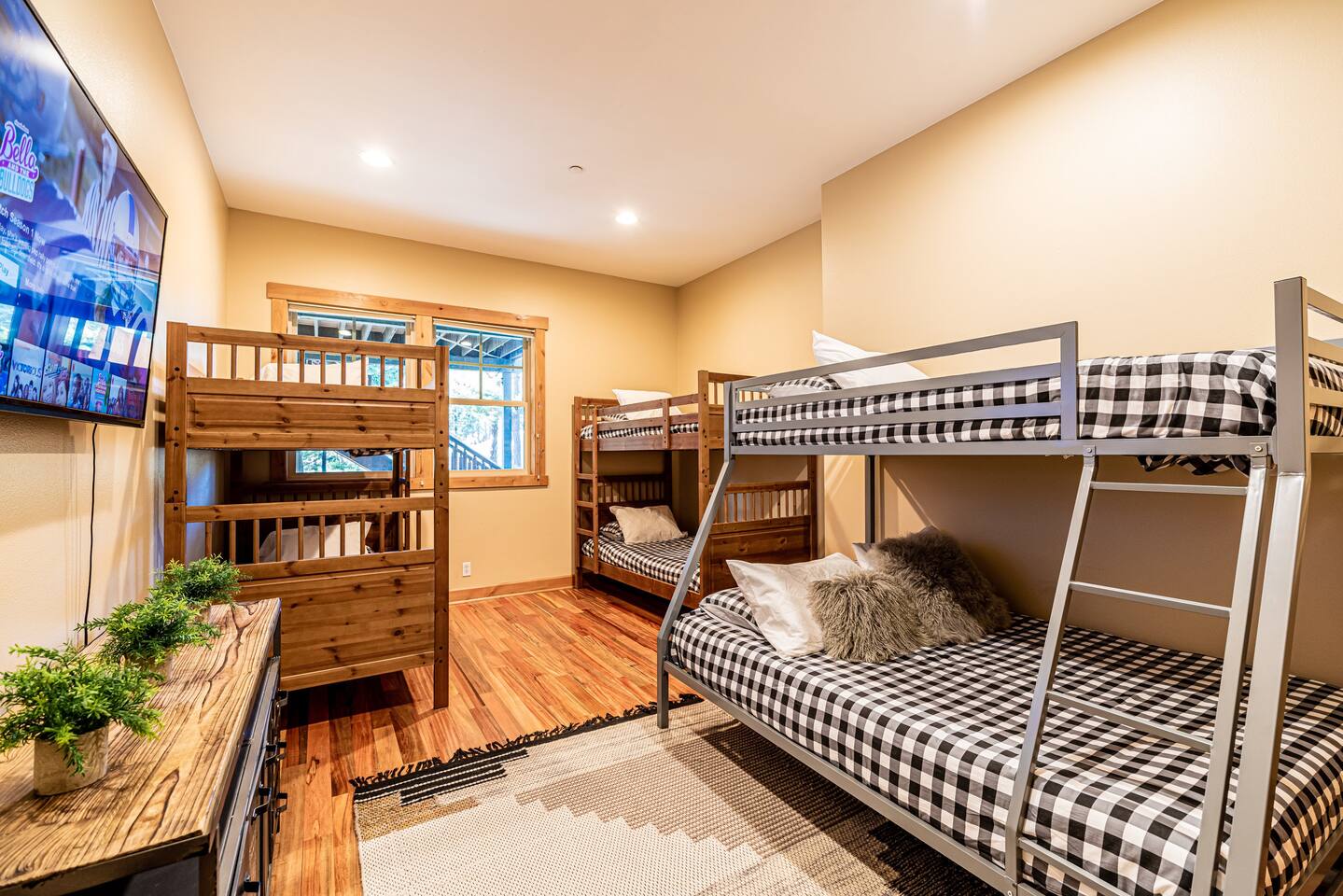 This stunning home offers the comfort, convenience, and privacy of a house with the luxury of a high-end hotel. We have carefully provided luxurious furnishings and amenities to make it one of the most desirable vacation homes at Suncadia! The home offers many amenities, including a full kitchen with professional-grade appliances, a large living room with a beautiful stone fireplace, a large patio and deck, toys and games for the whole family, 6 large HDTV's with DirectTV, apps, and FireTV's, and complimentary 100MB internet. Also we have just recently added a Golf Simulator for year round Golf. It’s all you could want for your next getaway! • Kitchen: the spacious kitchen features all the appliances, cookware, and utensils you need to prepare delicious meals—or you can cook outdoors on our gas barbeque. Enjoy your culinary creations at the spacious 10-seat dining room table, kitchen bar, or even outside on our 8-person patio set and enormous outdoor sectional. This home was built for entertaining! • Activities: there are many ways to spend a fun afternoon or evening around the property, from relaxing in the 8-person hot tub, to enjoying lawn games, to watching your favorite sports in the spacious living room on our 65” 4K curved TV. In the living room curl up with a book beside the stone fireplace, or enjoy the evening with a large group of family and friends. • Bedrooms: each of the 4 bedrooms are fully furnished for your group and uniquely designed with their own themes, and the bathrooms are stocked with complimentary essentials. The master bedroom offers a plush king-size bed, gas fireplace, TV, and ensuite bathroom with rain shower. The lower level features two more bedroom suites with king sized beds, each with televisions and their own private bathrooms—if you’d prefer, one of the beds can be converted to two twins. The 4th bedroom features 6 bunk beds with sleeping for 7.