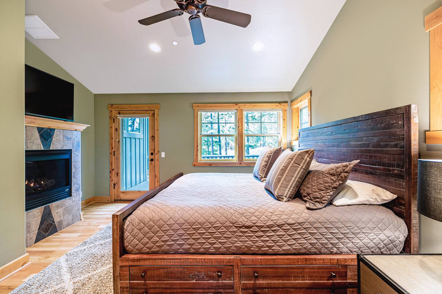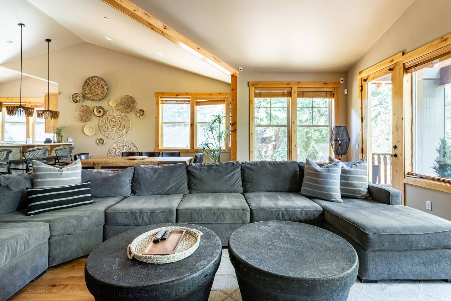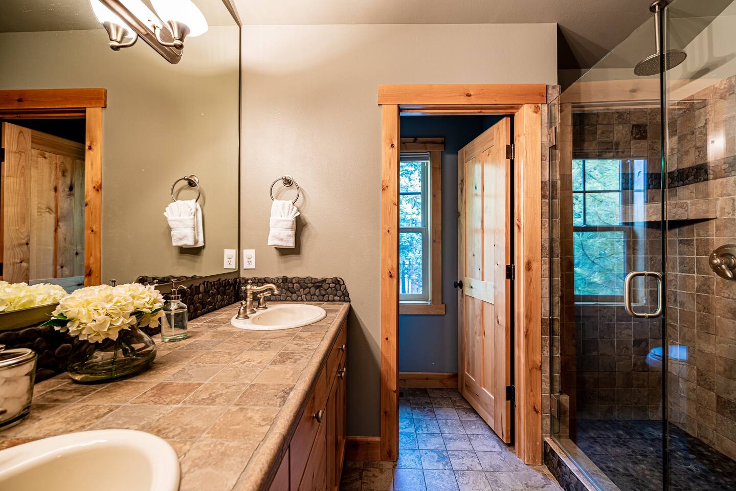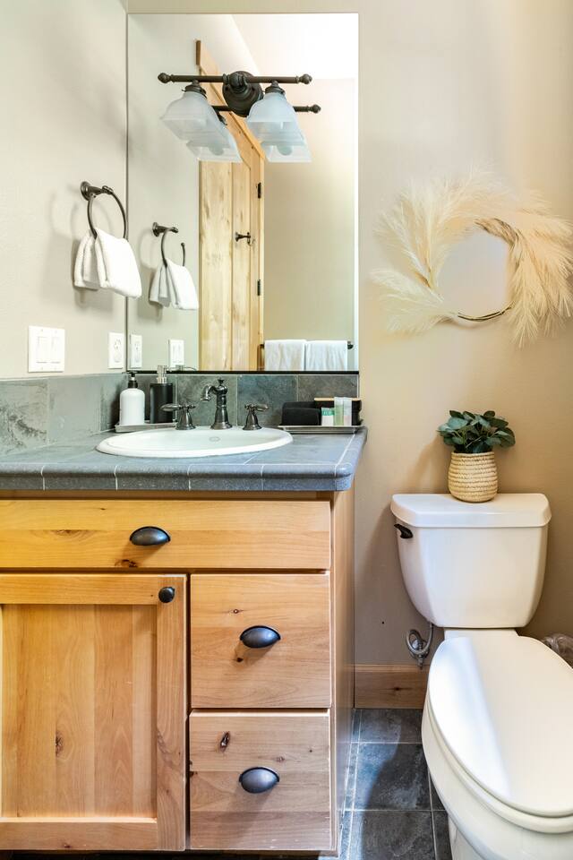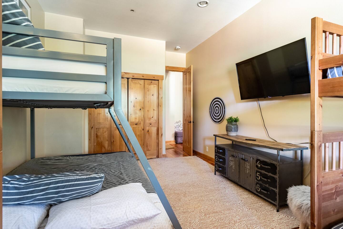 This stunning home offers the comfort, convenience, and privacy of a house with the luxury of a high-end hotel. We have carefully provided luxurious furnishings and amenities to make it one of the most desirable vacation homes at Suncadia! The home offers many amenities, including a full kitchen with professional-grade appliances, a large living room with a beautiful stone fireplace, a large patio and deck, toys and games for the whole family, 6 large HDTV's with DirectTV, apps, and FireTV's, and complimentary 100MB internet. Also we have just recently added a Golf Simulator for year round Golf. It’s all you could want for your next getaway! • Kitchen: the spacious kitchen features all the appliances, cookware, and utensils you need to prepare delicious meals—or you can cook outdoors on our gas barbeque. Enjoy your culinary creations at the spacious 10-seat dining room table, kitchen bar, or even outside on our 8-person patio set and enormous outdoor sectional. This home was built for entertaining! • Activities: there are many ways to spend a fun afternoon or evening around the property, from relaxing in the 8-person hot tub, to enjoying lawn games, to watching your favorite sports in the spacious living room on our 65” 4K curved TV. In the living room curl up with a book beside the stone fireplace, or enjoy the evening with a large group of family and friends. • Bedrooms: each of the 4 bedrooms are fully furnished for your group and uniquely designed with their own themes, and the bathrooms are stocked with complimentary essentials. The master bedroom offers a plush king-size bed, gas fireplace, TV, and ensuite bathroom with rain shower. The lower level features two more bedroom suites with king sized beds, each with televisions and their own private bathrooms—if you’d prefer, one of the beds can be converted to two twins. The 4th bedroom features 6 bunk beds with sleeping for 7.