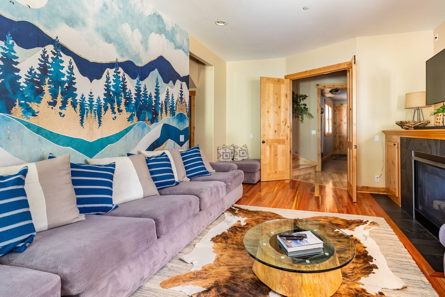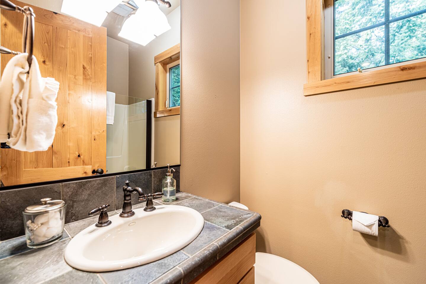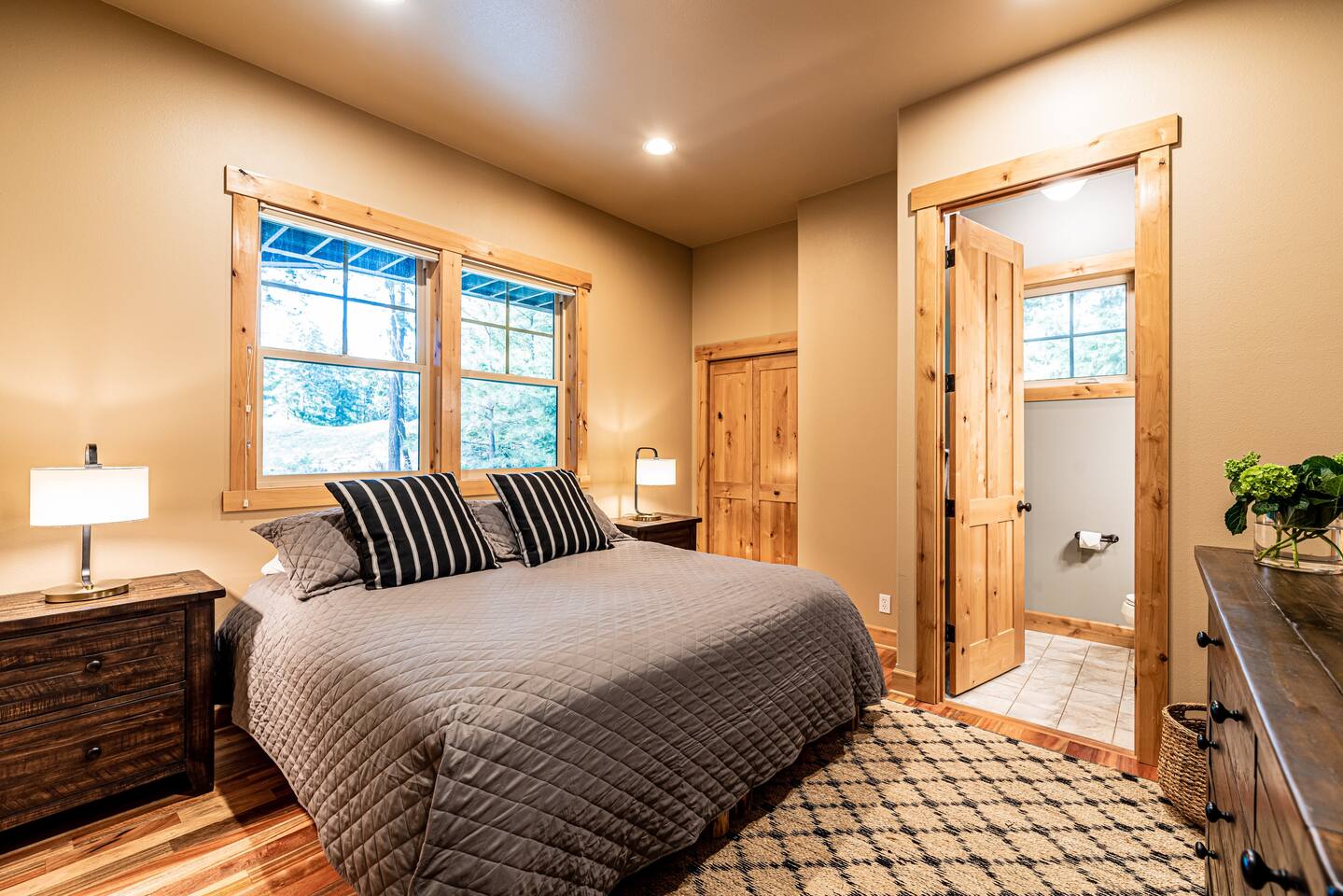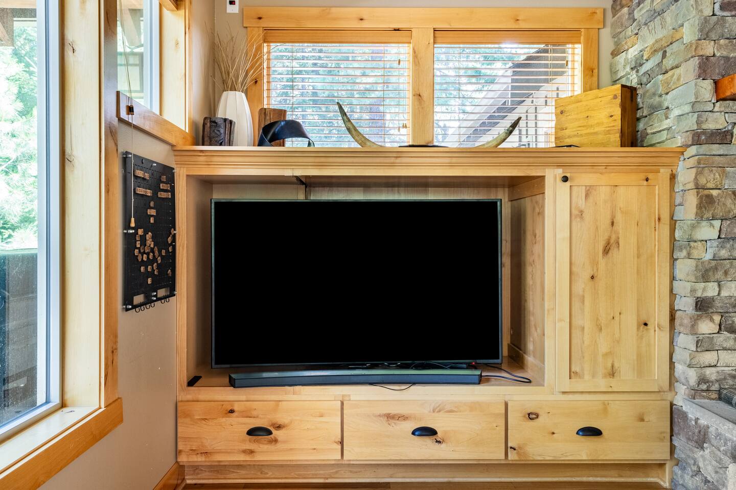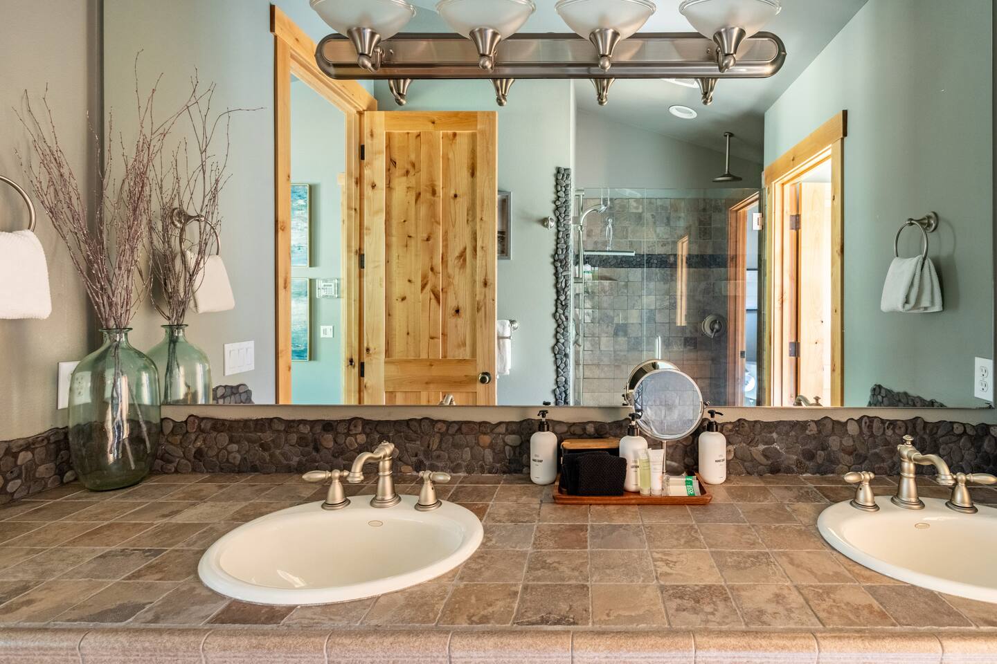 This stunning home offers the comfort, convenience, and privacy of a house with the luxury of a high-end hotel. We have carefully provided luxurious furnishings and amenities to make it one of the most desirable vacation homes at Suncadia! The home offers many amenities, including a full kitchen with professional-grade appliances, a large living room with a beautiful stone fireplace, a large patio and deck, toys and games for the whole family, 6 large HDTV's with DirectTV, apps, and FireTV's, and complimentary 100MB internet. Also we have just recently added a Golf Simulator for year round Golf. It’s all you could want for your next getaway! • Kitchen: the spacious kitchen features all the appliances, cookware, and utensils you need to prepare delicious meals—or you can cook outdoors on our gas barbeque. Enjoy your culinary creations at the spacious 10-seat dining room table, kitchen bar, or even outside on our 8-person patio set and enormous outdoor sectional. This home was built for entertaining! • Activities: there are many ways to spend a fun afternoon or evening around the property, from relaxing in the 8-person hot tub, to enjoying lawn games, to watching your favorite sports in the spacious living room on our 65” 4K curved TV. In the living room curl up with a book beside the stone fireplace, or enjoy the evening with a large group of family and friends. • Bedrooms: each of the 4 bedrooms are fully furnished for your group and uniquely designed with their own themes, and the bathrooms are stocked with complimentary essentials. The master bedroom offers a plush king-size bed, gas fireplace, TV, and ensuite bathroom with rain shower. The lower level features two more bedroom suites with king sized beds, each with televisions and their own private bathrooms—if you’d prefer, one of the beds can be converted to two twins. The 4th bedroom features 6 bunk beds with sleeping for 7.