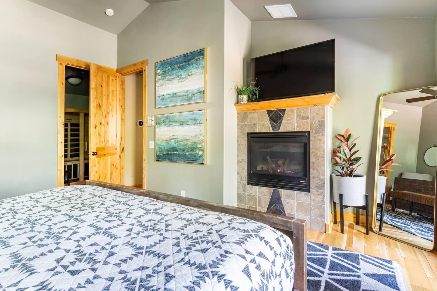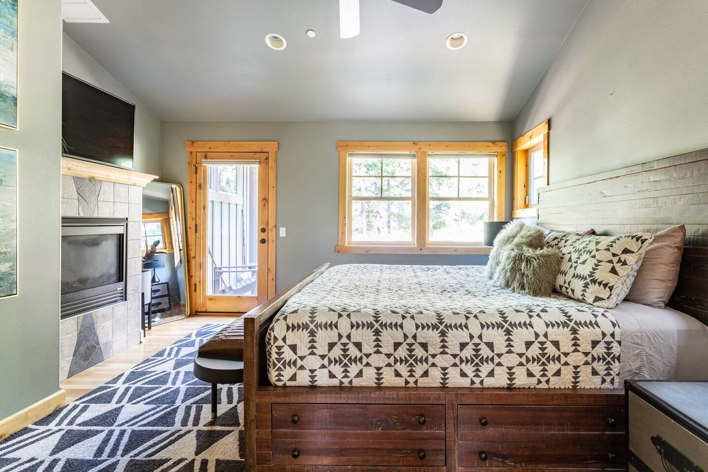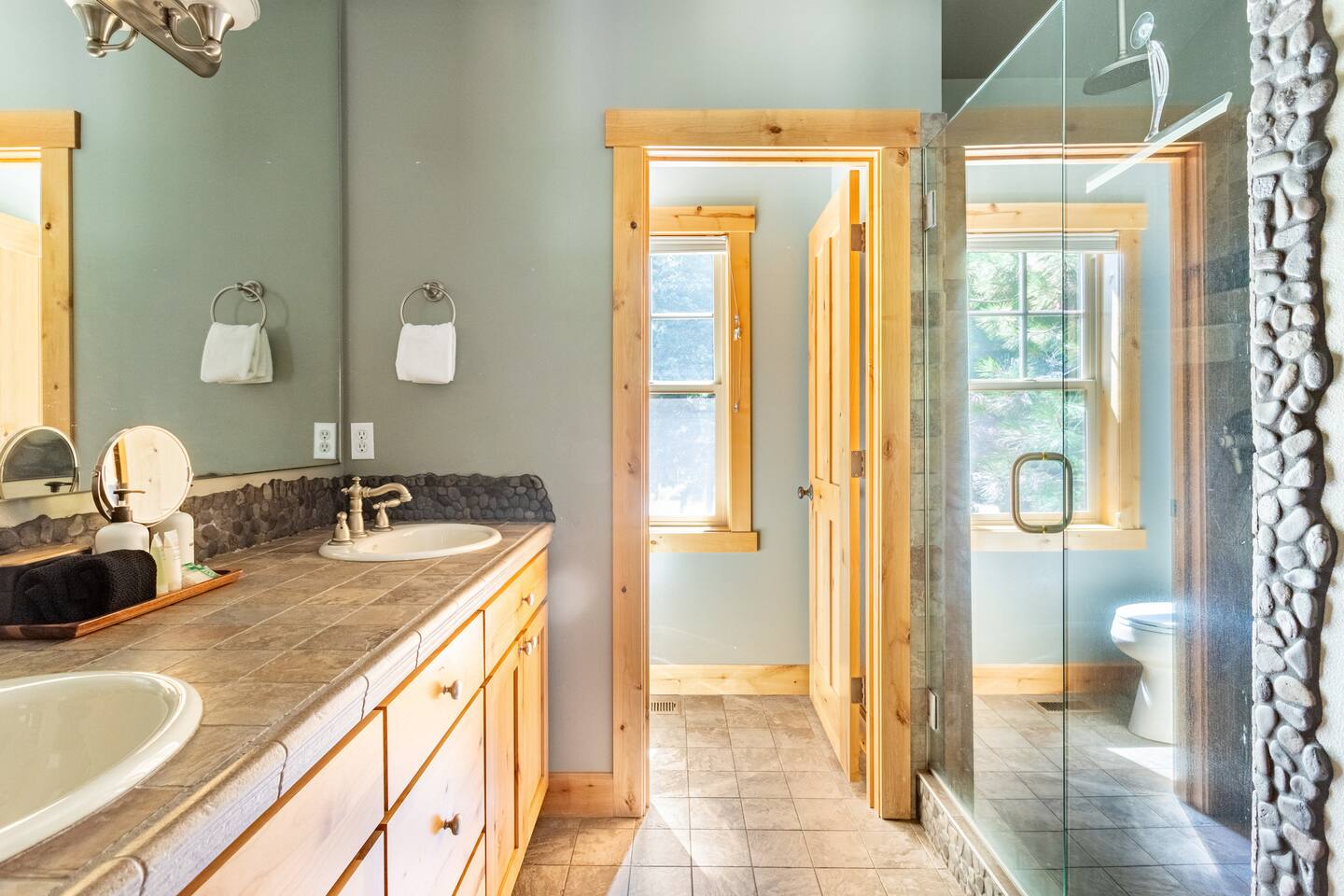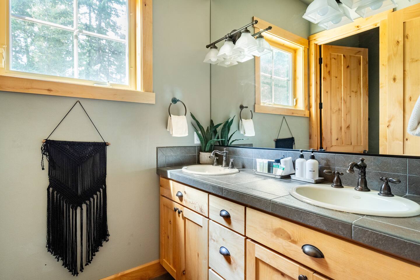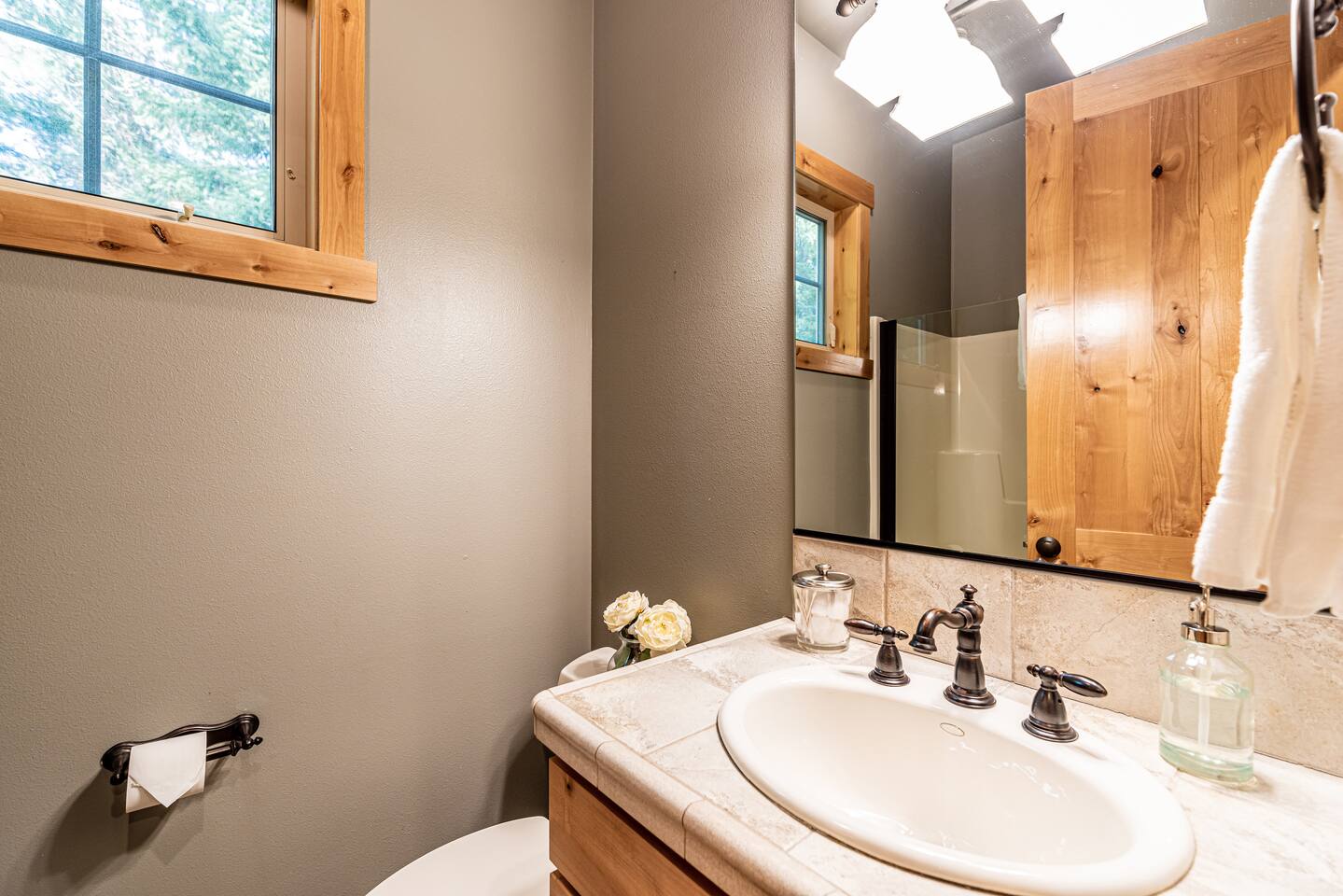 This stunning home offers the comfort, convenience, and privacy of a house with the luxury of a high-end hotel. We have carefully provided luxurious furnishings and amenities to make it one of the most desirable vacation homes at Suncadia! The home offers many amenities, including a full kitchen with professional-grade appliances, a large living room with a beautiful stone fireplace, a large patio and deck, toys and games for the whole family, 6 large HDTV's with DirectTV, apps, and FireTV's, and complimentary 100MB internet. Also we have just recently added a Golf Simulator for year round Golf. It’s all you could want for your next getaway! • Kitchen: the spacious kitchen features all the appliances, cookware, and utensils you need to prepare delicious meals—or you can cook outdoors on our gas barbeque. Enjoy your culinary creations at the spacious 10-seat dining room table, kitchen bar, or even outside on our 8-person patio set and enormous outdoor sectional. This home was built for entertaining! • Activities: there are many ways to spend a fun afternoon or evening around the property, from relaxing in the 8-person hot tub, to enjoying lawn games, to watching your favorite sports in the spacious living room on our 65” 4K curved TV. In the living room curl up with a book beside the stone fireplace, or enjoy the evening with a large group of family and friends. • Bedrooms: each of the 4 bedrooms are fully furnished for your group and uniquely designed with their own themes, and the bathrooms are stocked with complimentary essentials. The master bedroom offers a plush king-size bed, gas fireplace, TV, and ensuite bathroom with rain shower. The lower level features two more bedroom suites with king sized beds, each with televisions and their own private bathrooms—if you’d prefer, one of the beds can be converted to two twins. The 4th bedroom features 6 bunk beds with sleeping for 7.