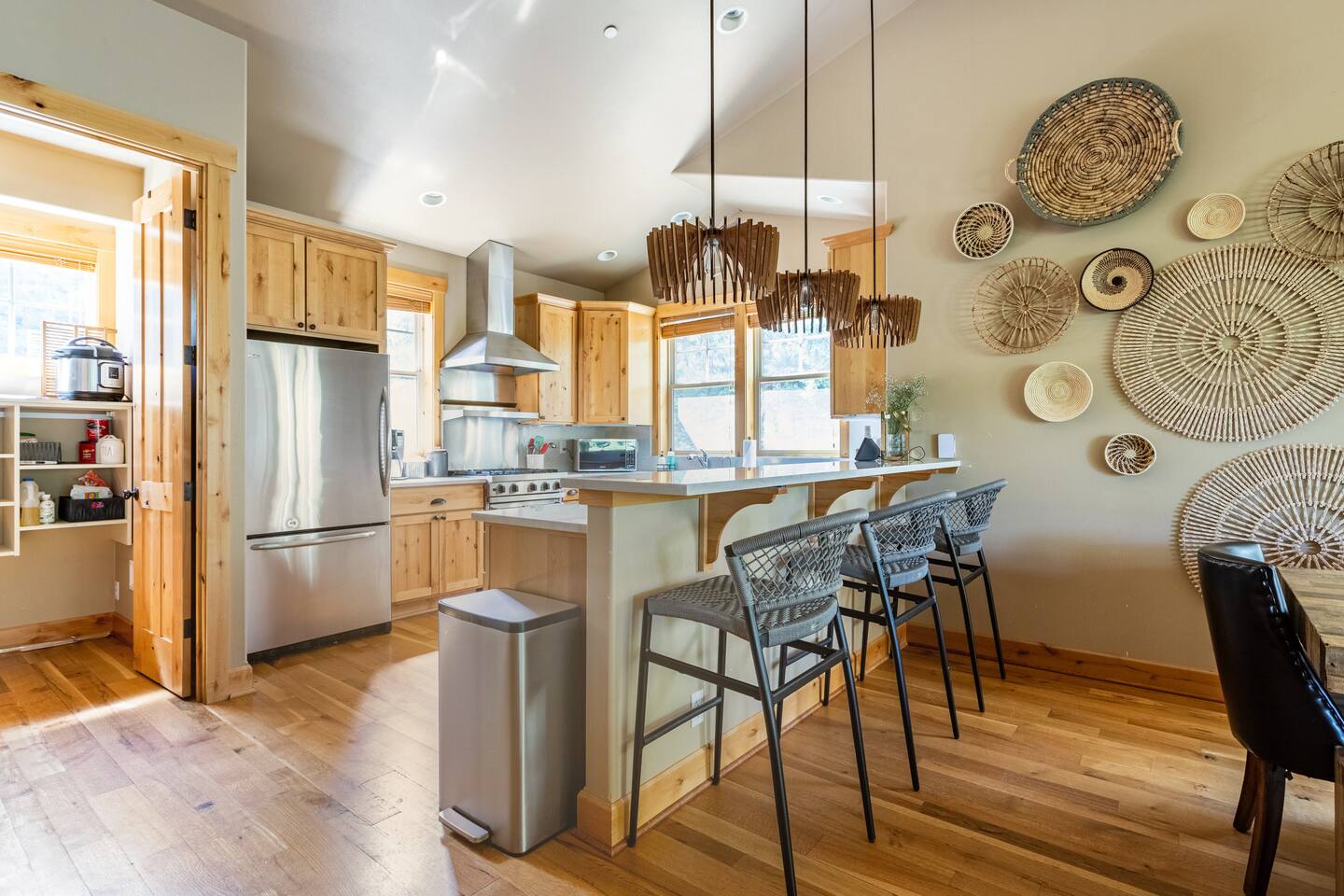 Please note that we charge a $100 fee per pet. Well-behaved and trained dogs only, please! Must climb stairs - There is a small flight of stairs at the entrance, and a full flight of stairs down to the lower level. Parties and events are not allowed during COVID.
