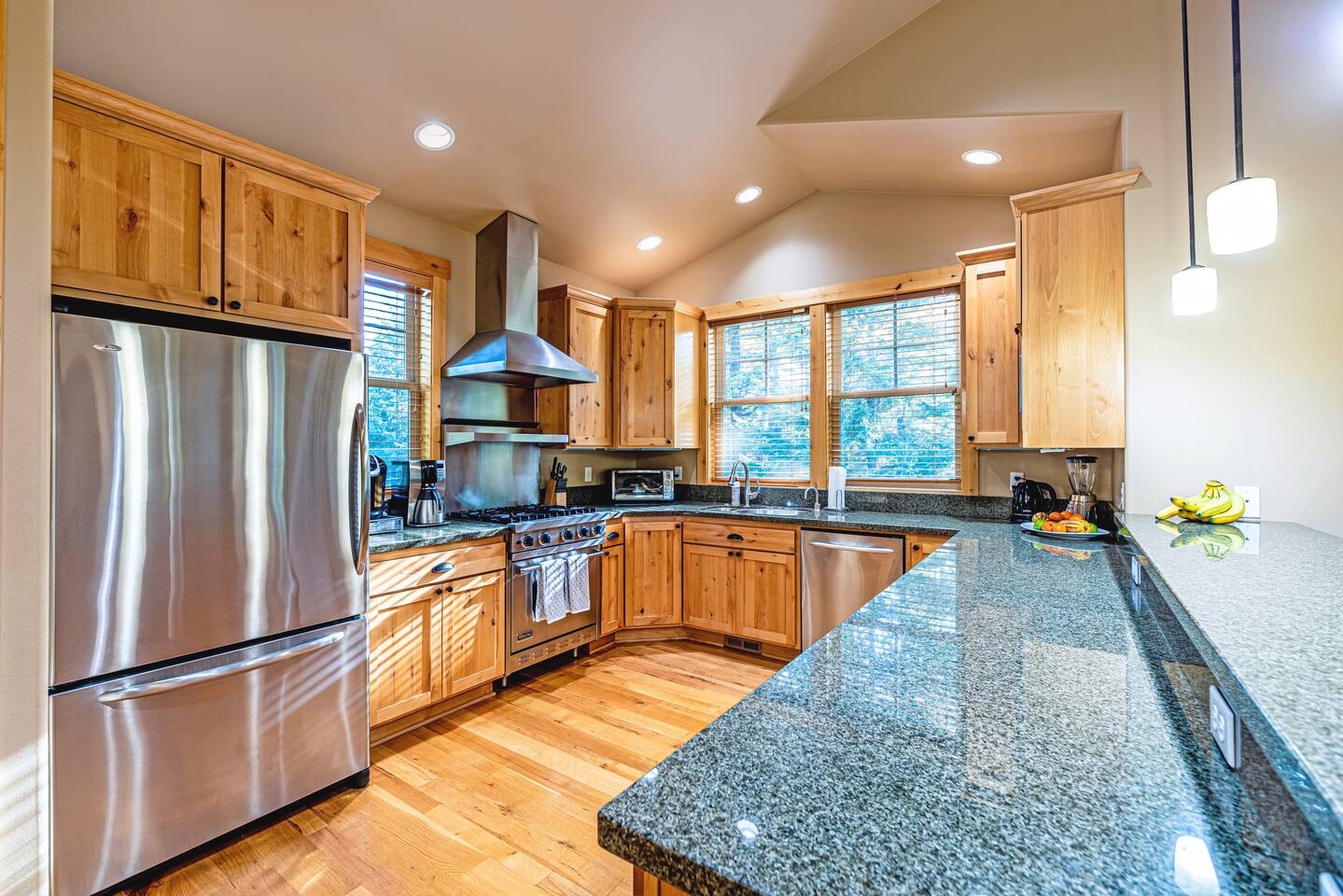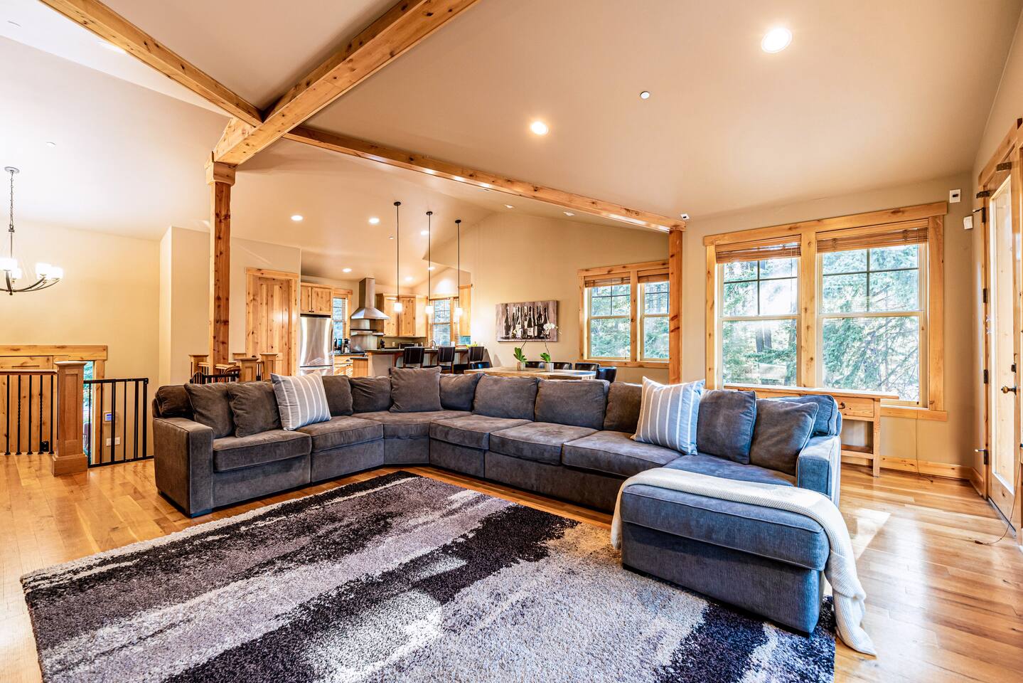 Relax and enjoy your stay at this spacious and beautiful private home, located at the 4th hole of Prospector Golf Course. With an abundance of living space, 4 bedrooms, 4.5 bathrooms, and sleeping arrangements for up to 14 guests, there’s plenty of room for family and friends! The home is ideally positioned for direct fairway views while being surrounded by trees for excellent privacy, and offers a sprawling acre of level grounds for year-round activities.