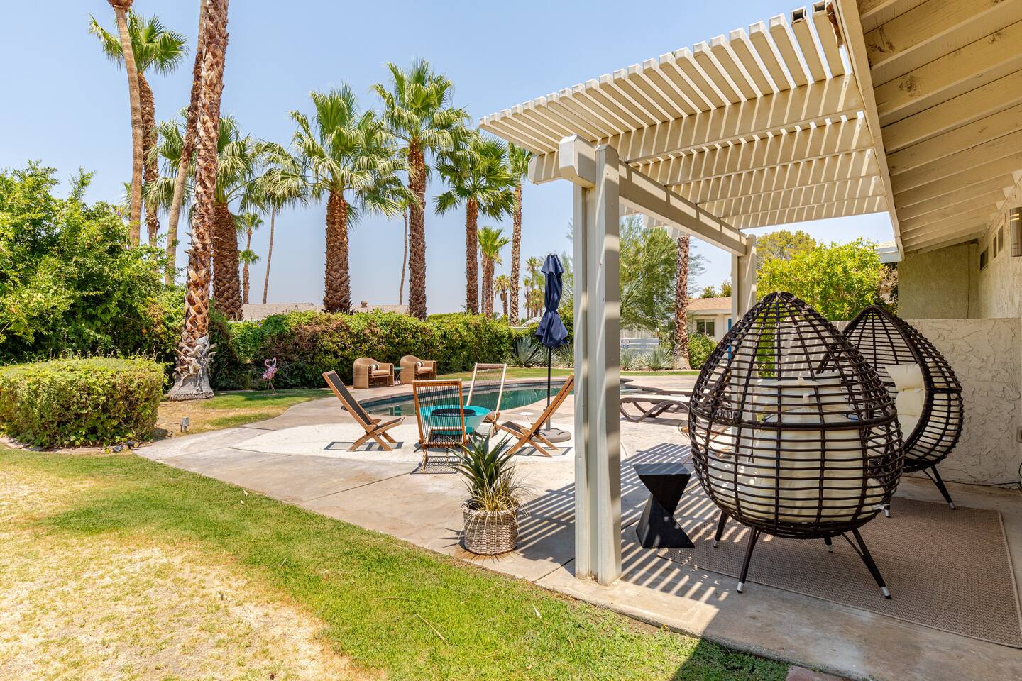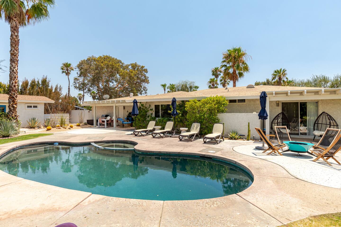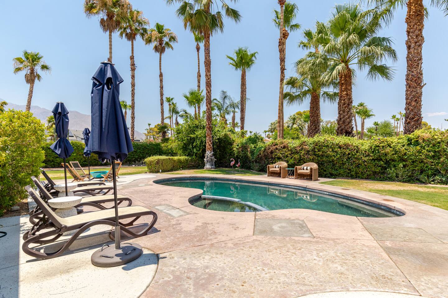 Walk into Palm Springs of yesterday . Gather , relax , dip & sip while bathing in the beauty of the surrounding mountains and awesome sunrise / sunsets of the desert . Bocce , bbq, spa , swim amongst fruit trees & hummingbirds , it’s truly an experience & for your hosts a tradition Our love & appreciation for Palm Springs started back in the 50 s When our great grandparents Mario & Laura discovered & settled here a mile away. Followed by Lido & Emma the enchantment continued . You’ll feel it ❤️🌴